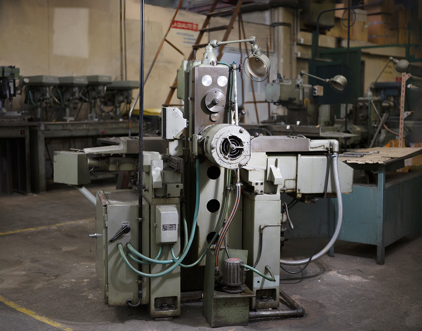 Julien Guinand a réalisé une série de photographies de machines industrielles et des paysages qui les entourent dans plusieurs entreprises stéphanoises. Isolées de leur environnement, saisies frontalement, ces machines apparaissent comme des figures singulières, presque sculpturales. Tirées en grand format, les images prennent l’allure de portraits, révélant la puissance silencieuse de ces outils et la beauté brute du monde industriel.